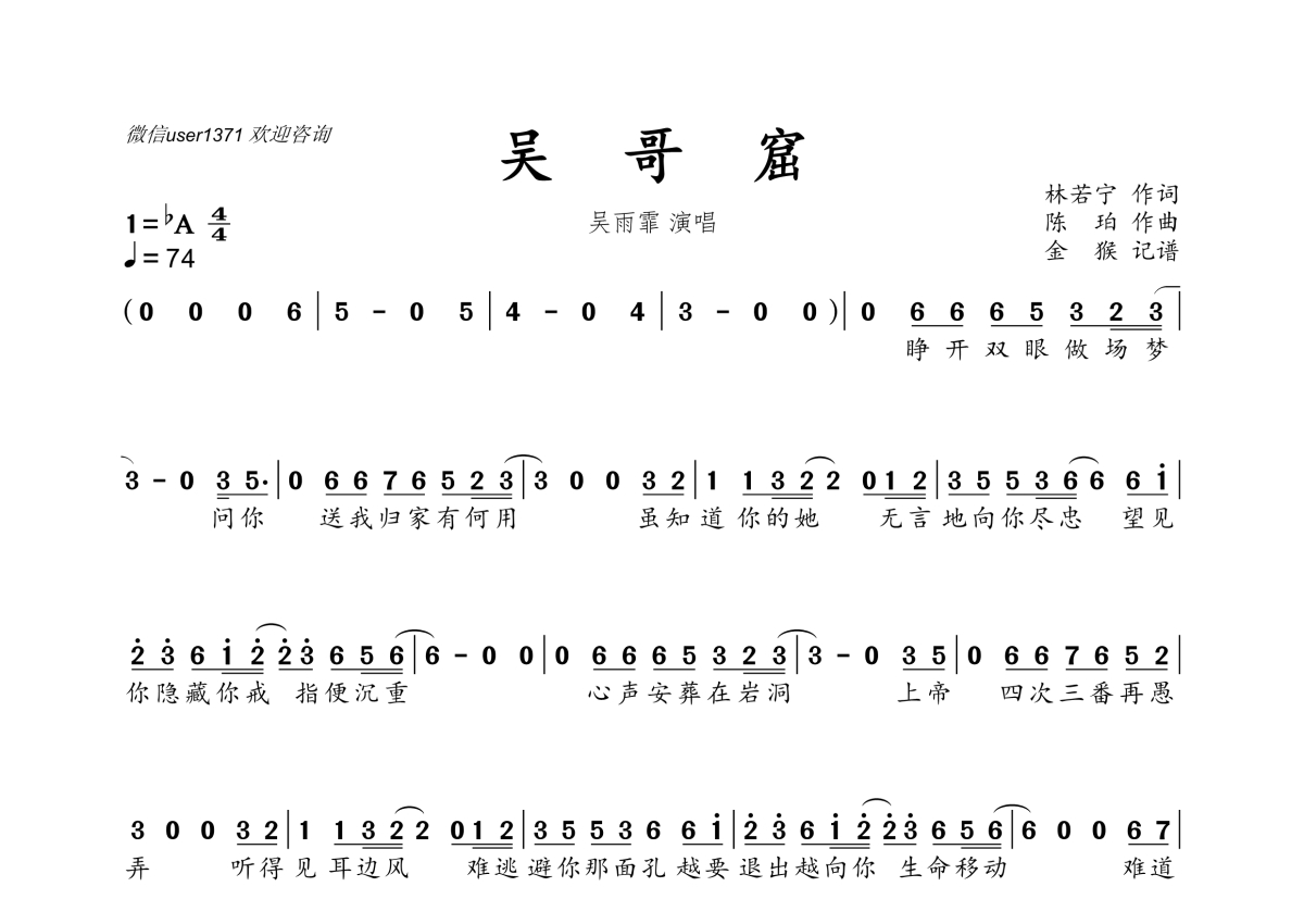 吴哥窟简谱 - 吴雨霏