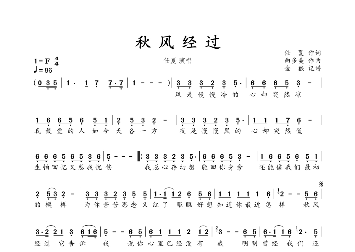 • 秋风经过简谱 - 任夏第1张