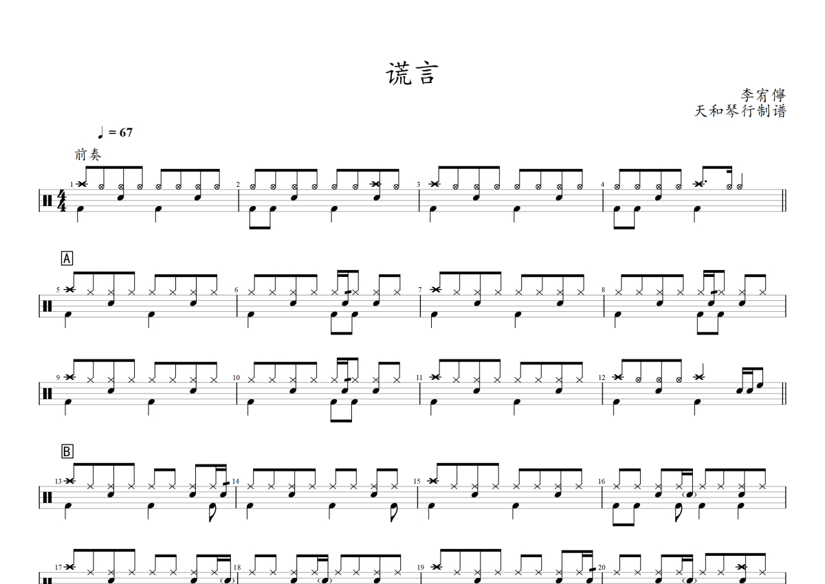• 谎言鼓谱 - 李宥儜 - 架子鼓谱第1张