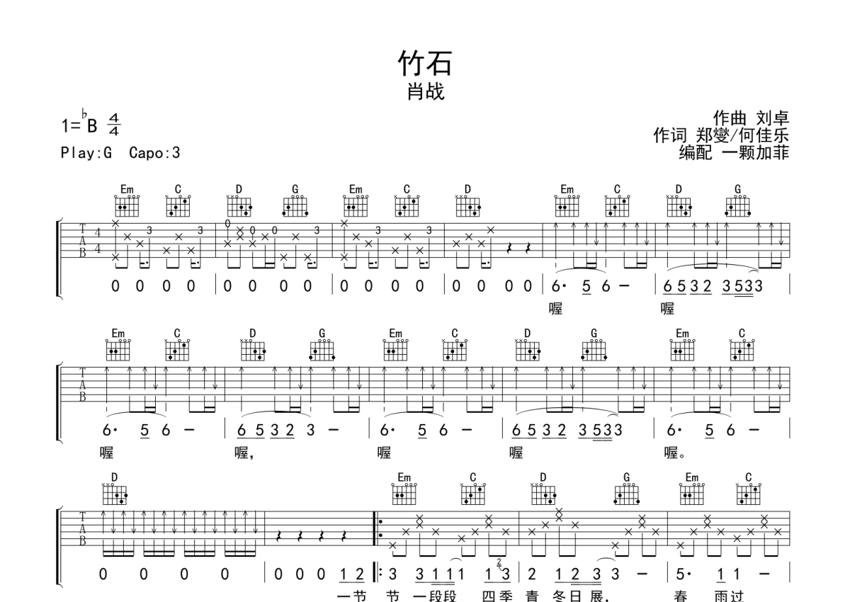 • 竹石吉他谱 - 肖战 - G调吉他弹唱谱第1张