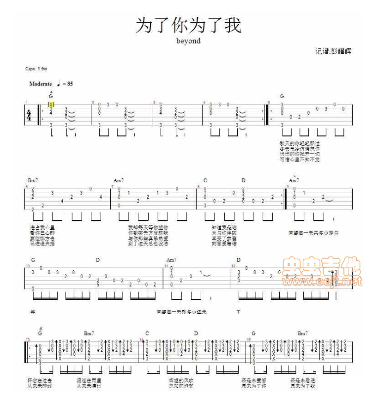 为了你为了我吉他谱 - beyond - 吉他弹唱谱