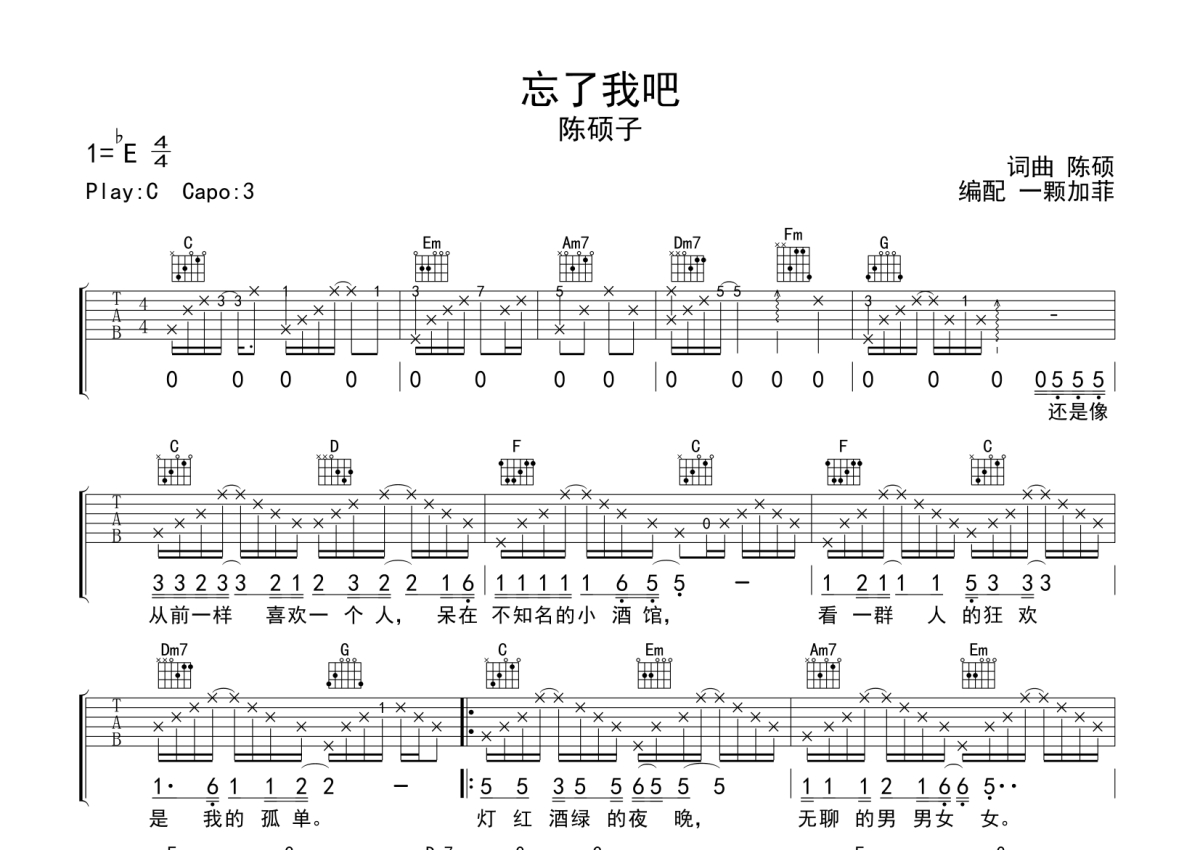 • 忘了我吧吉他谱 - 陈硕子 - C调吉他弹唱谱第1张