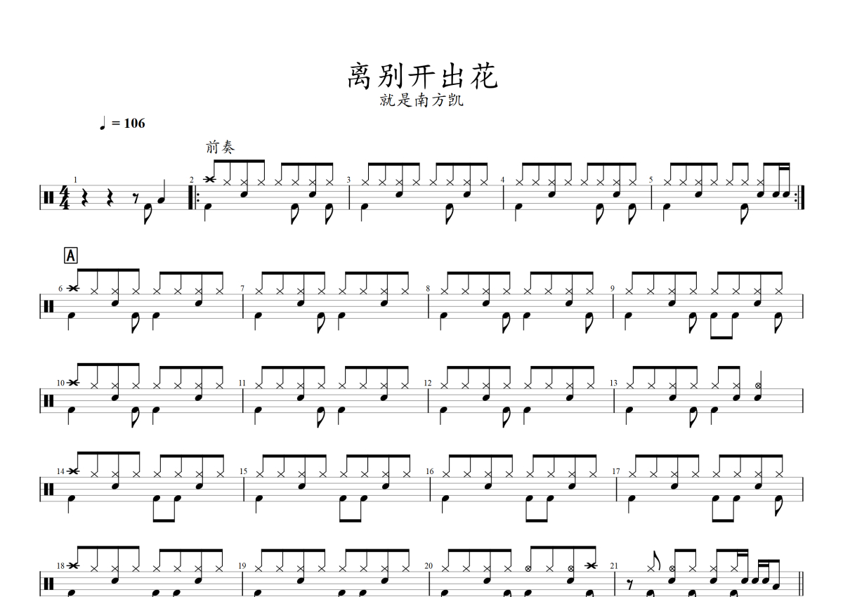 • 离别开出花鼓谱 - 就是南方凯 - 架子鼓谱第1张