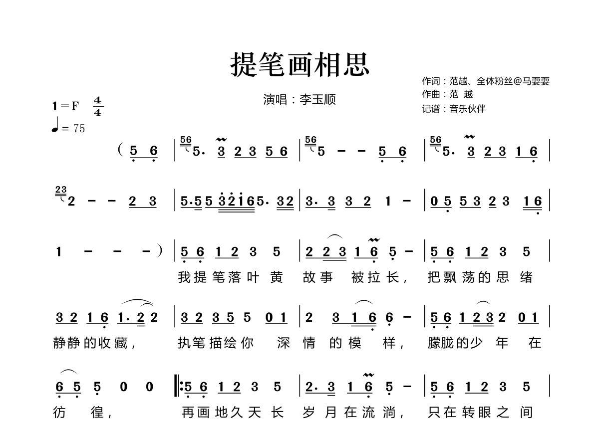 • 提笔画相思简谱 - 李玉顺第1张