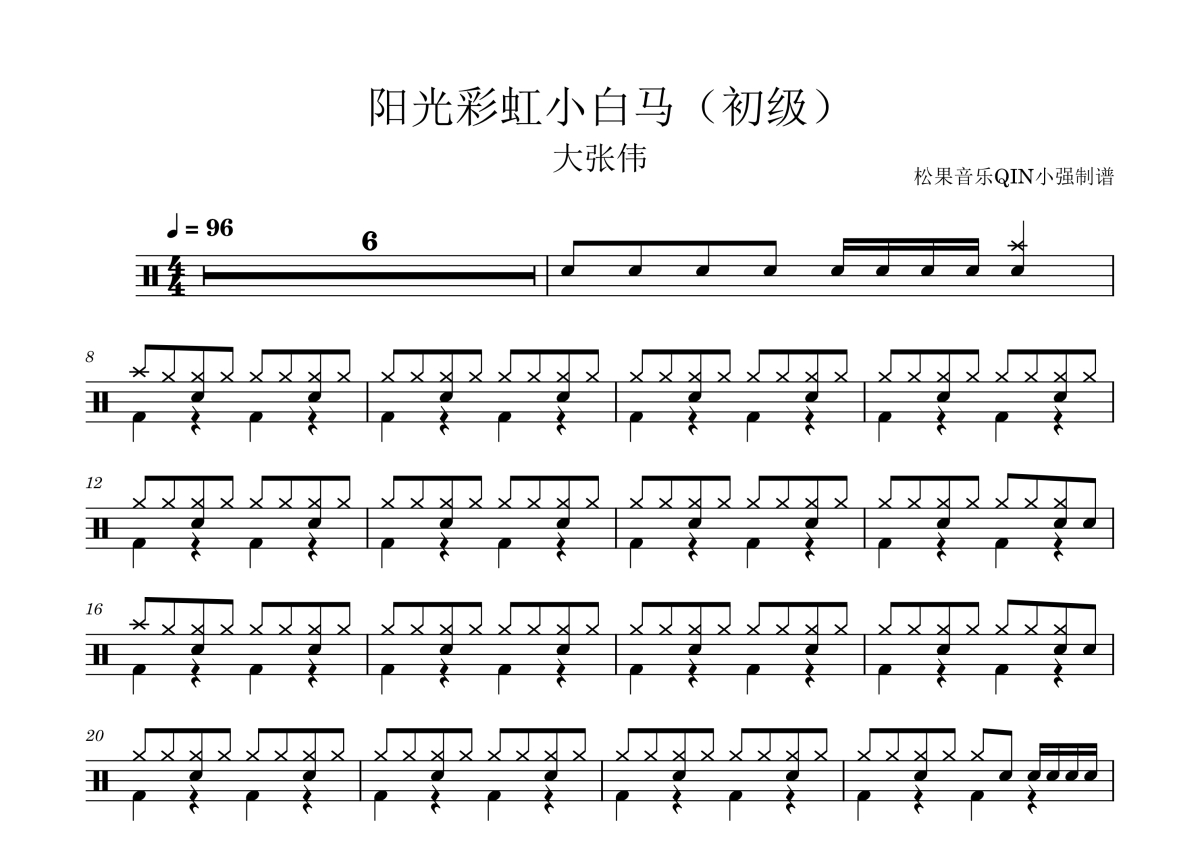 • 阳光彩虹小白马(初级)鼓谱 - 初级 - 架子鼓谱第1张