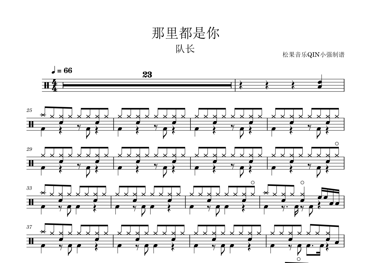 • 哪里都是你鼓谱 - 队长 - 架子鼓谱第1张