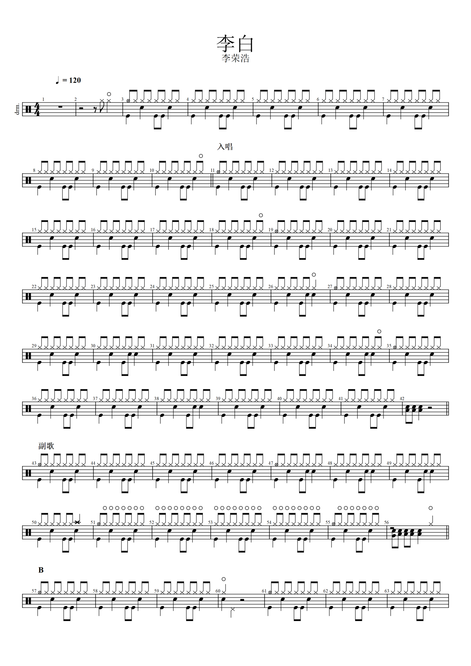 李白鼓谱 - 李荣浩 - 架子鼓谱