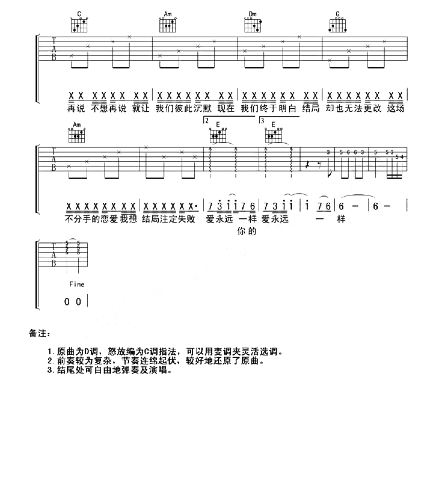 当前位置:琴谱网>吉他弹唱>不分手的恋爱