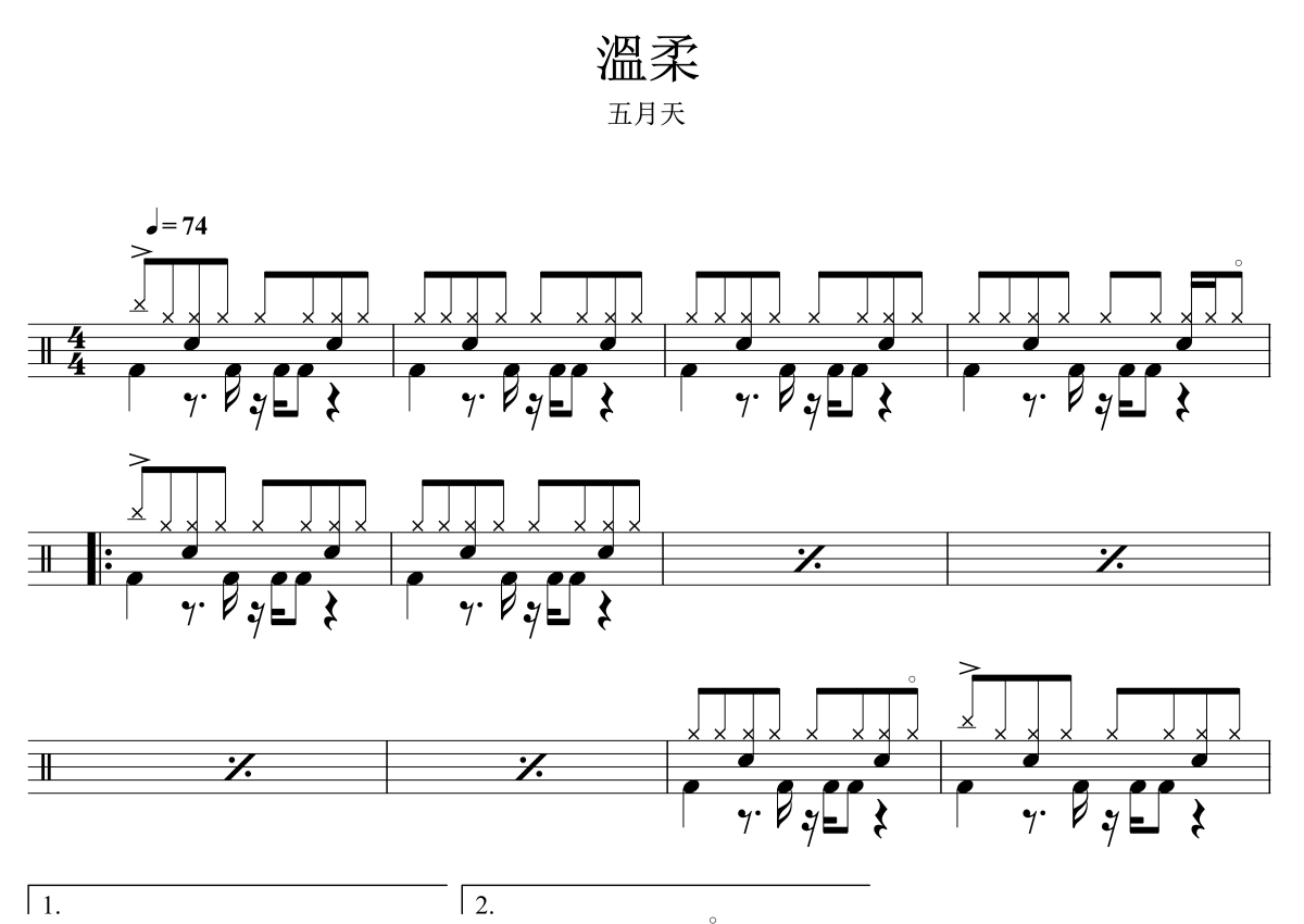• 温柔鼓谱 - 五月天 - 架子鼓谱第1张