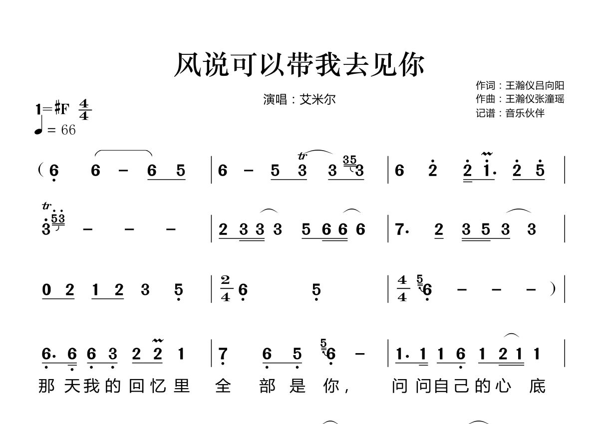 风说可以带我去见你简谱 - 艾米尔