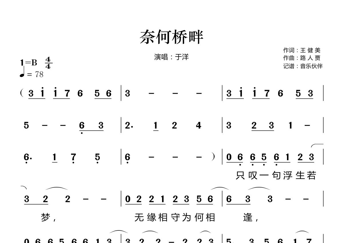 奈何桥畔简谱 - 于洋