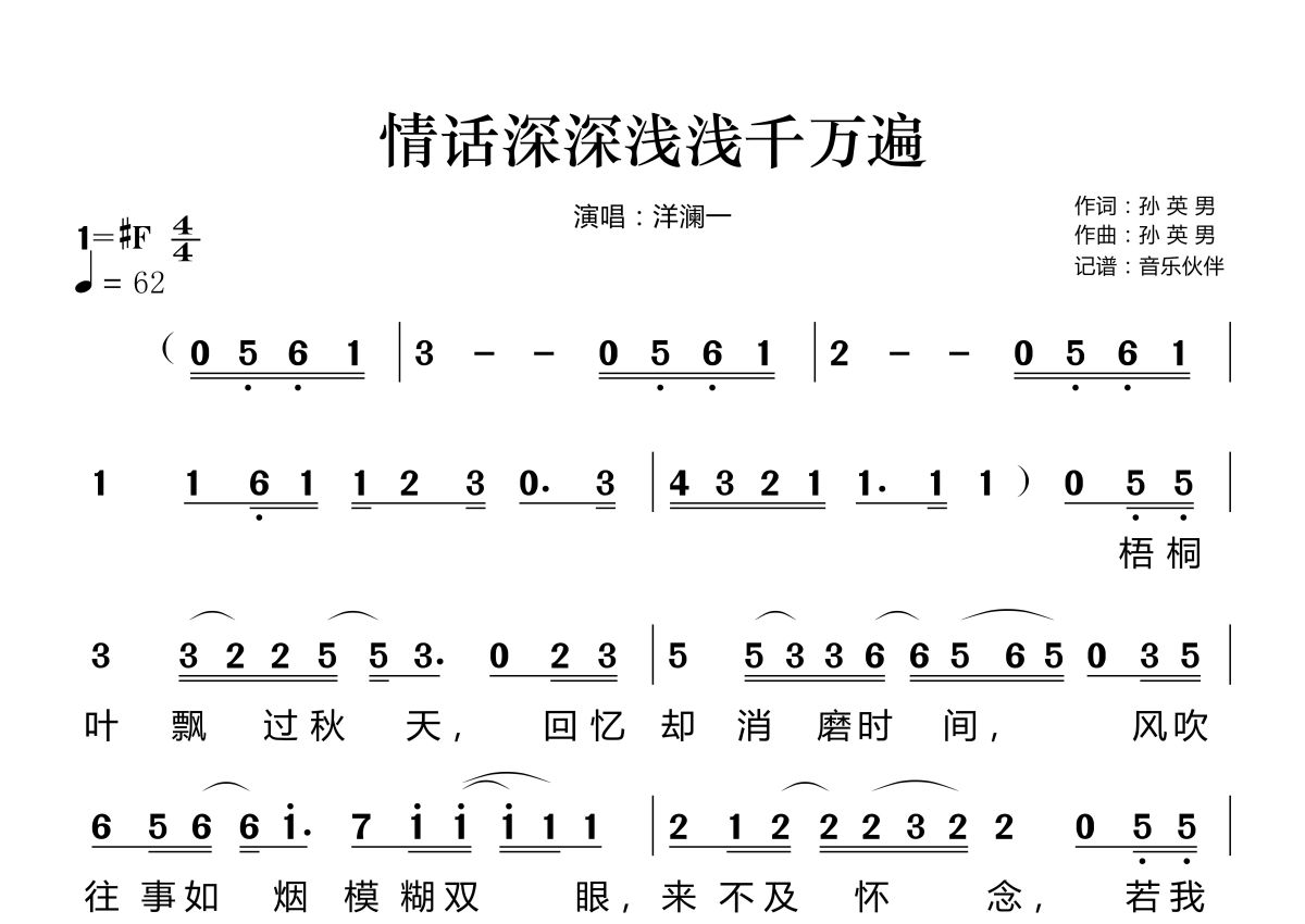 曲谱介绍: 洋澜一《情话深深浅浅千万遍》,音乐伙伴编配出品,共有2张高清图谱,免翻页排版设计。