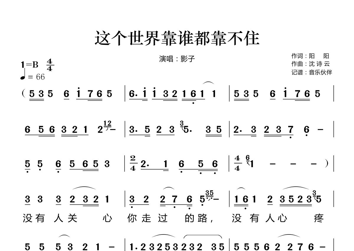 曲谱介绍: 影子《这个世界靠谁都靠不住》,音乐伙伴编配出品,共有2张高清图谱,免翻页排版设计。