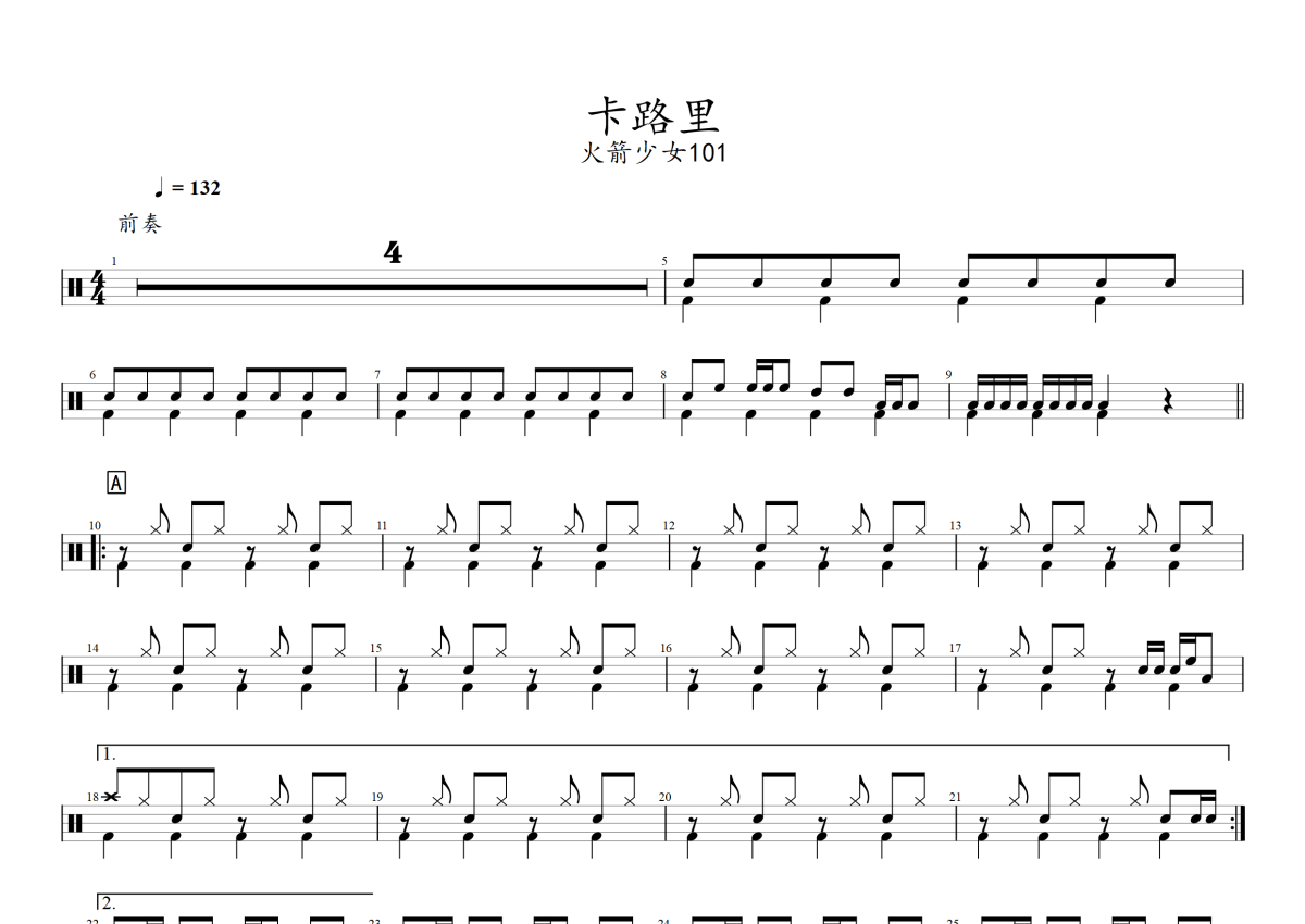 • 卡路里鼓谱 - 火箭少女101 - 架子鼓谱第1张