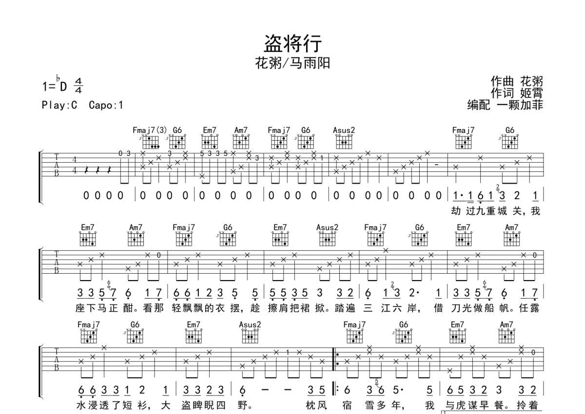 • 盗将行吉他谱 - 花粥 - C调吉他弹唱谱第1张