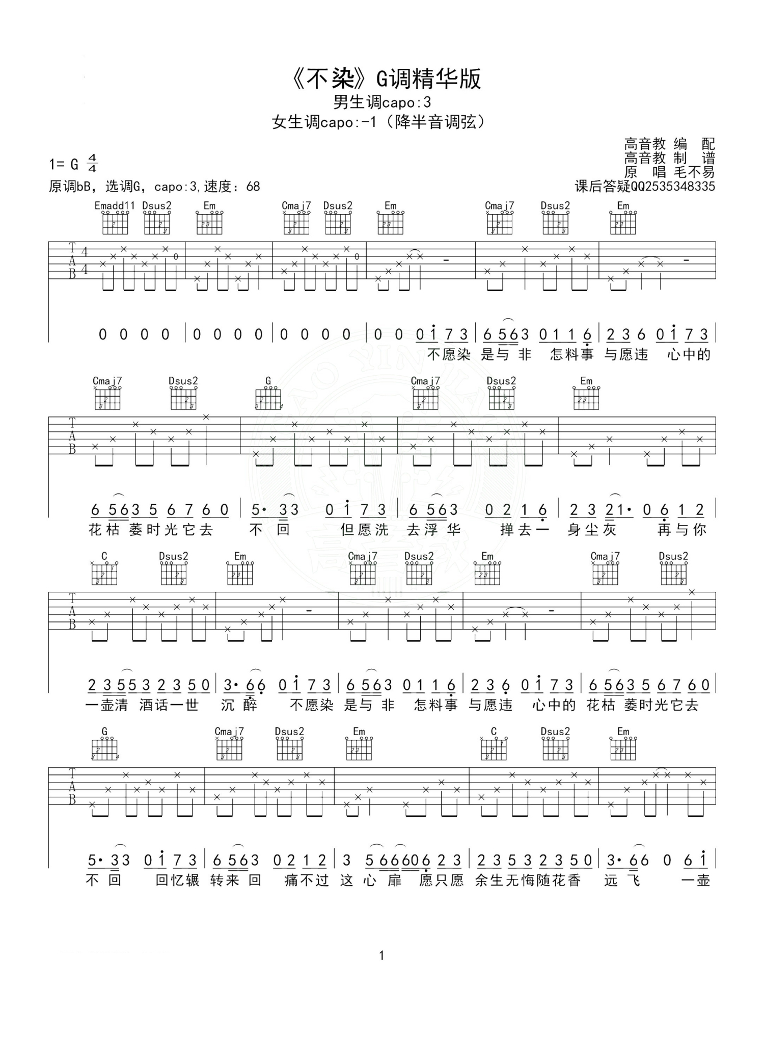曲谱介绍: 毛不易《不染》吉他谱_G调吉他弹唱谱