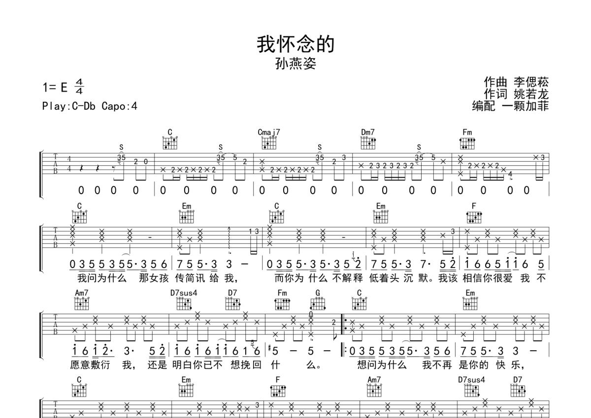 我怀念的吉他谱 - 孙燕姿 - C调吉他弹唱谱