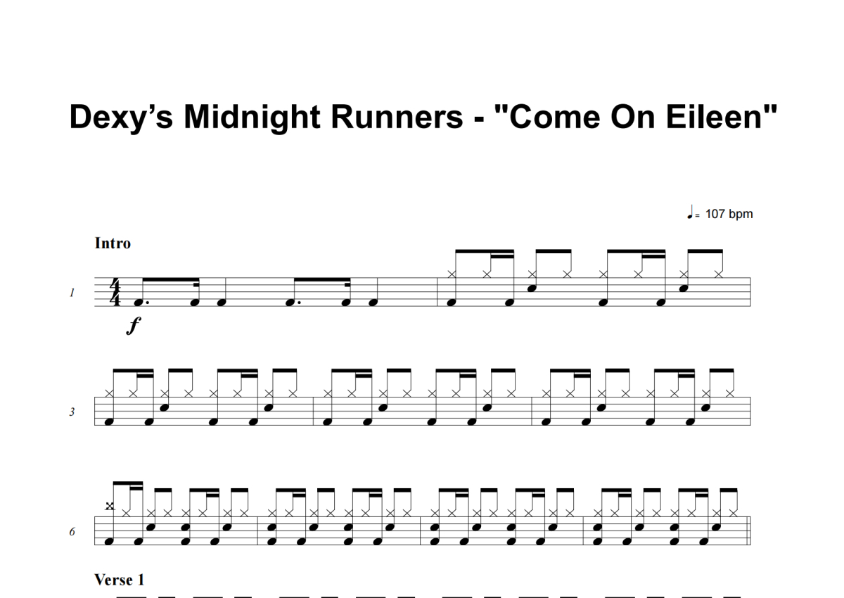 • Come On Eileen鼓谱 - Dexy’s Midnight Runners - 架子鼓谱第1张