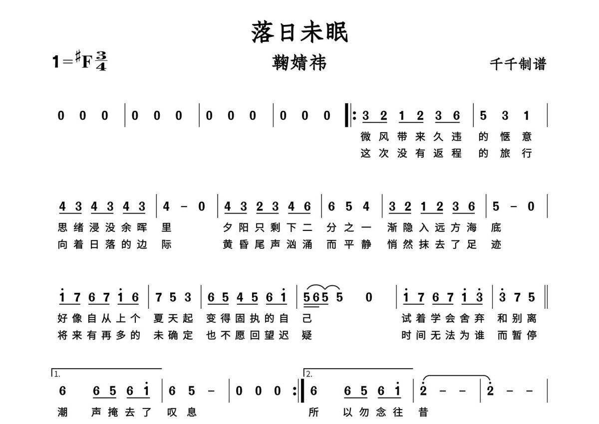 曲谱介绍: 鞠婧祎《落日未眠》,千千编配出品,共有2张高清图谱,免翻页排版设计。