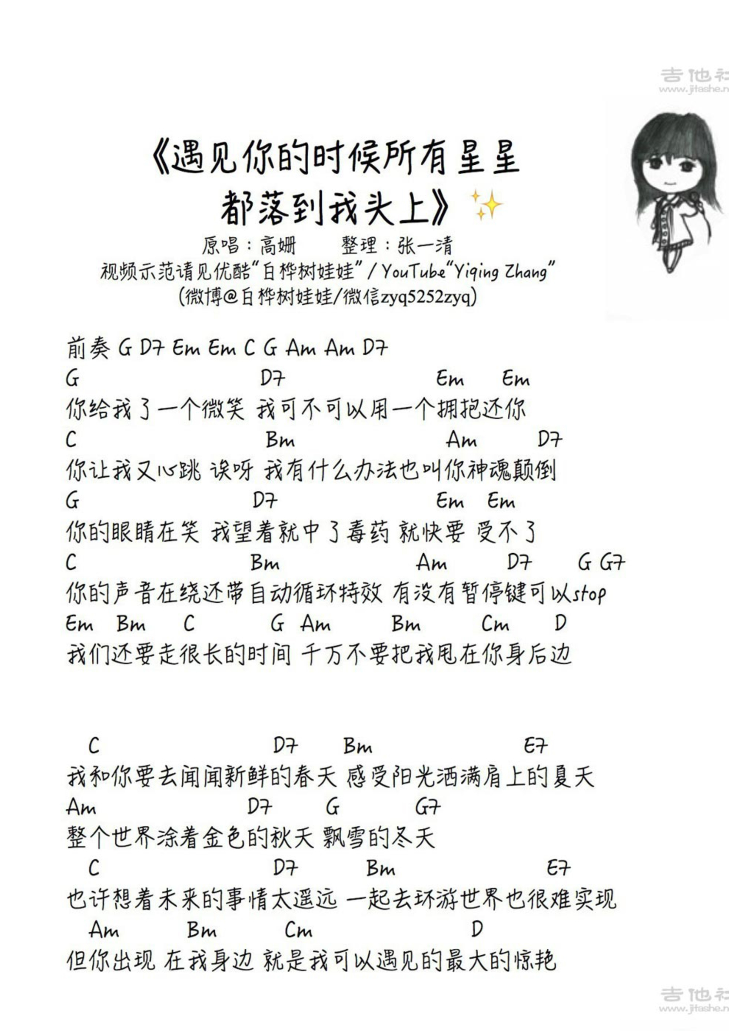 当前位置:琴谱网>吉他弹唱>遇见你的时候所有星星都落到我头上