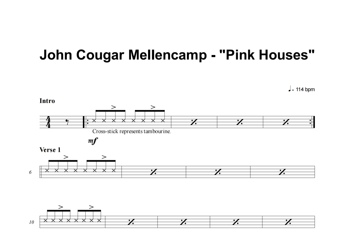 • Pink Houses鼓谱 - John Cougar Mellencamp - 架子鼓谱第1张