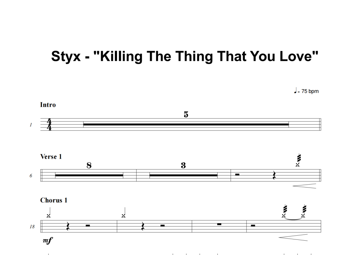 Killing The Thing That You Love鼓谱 - Styx - 架子鼓谱