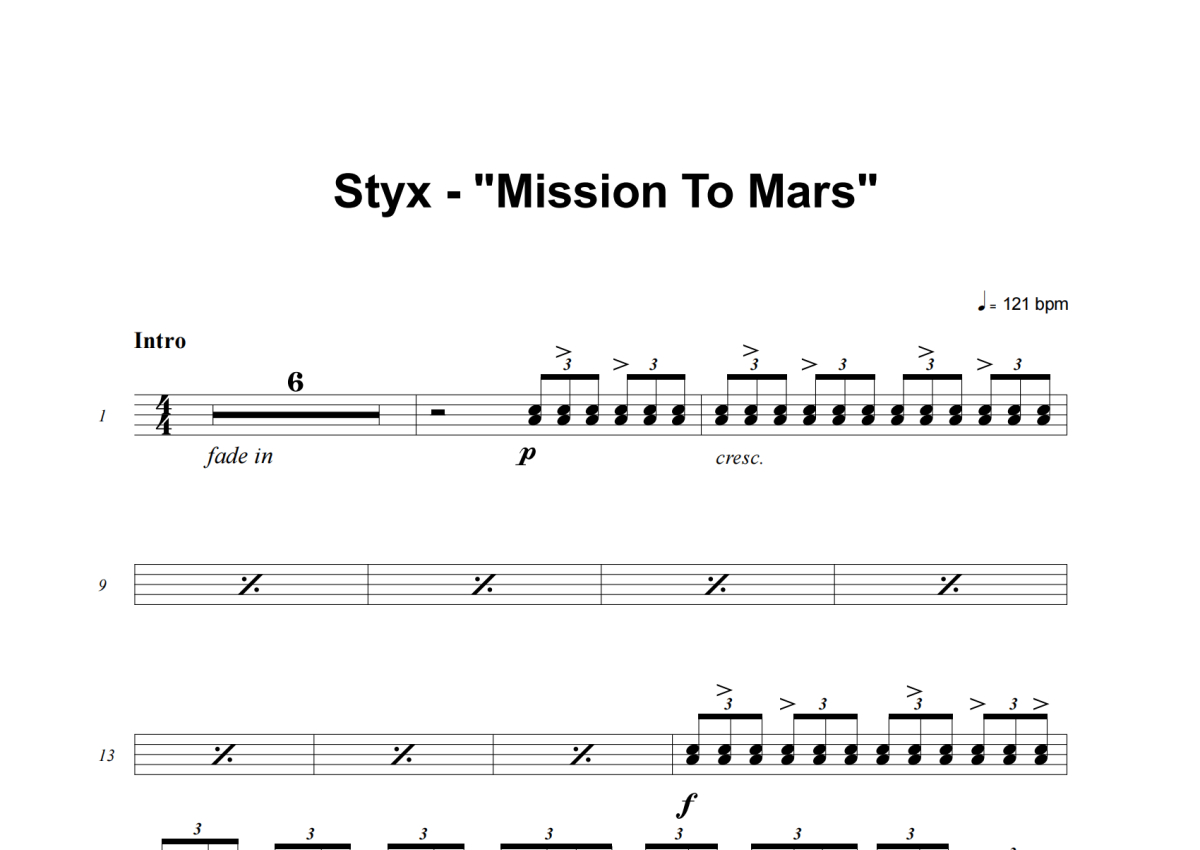 • Mission To Mars鼓谱 - Styx - 架子鼓谱第1张