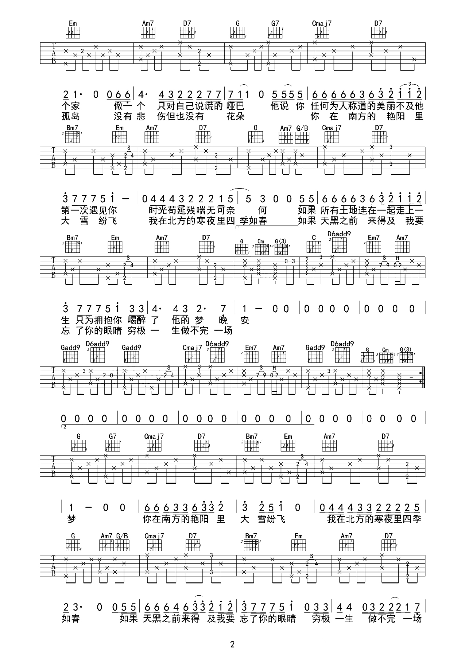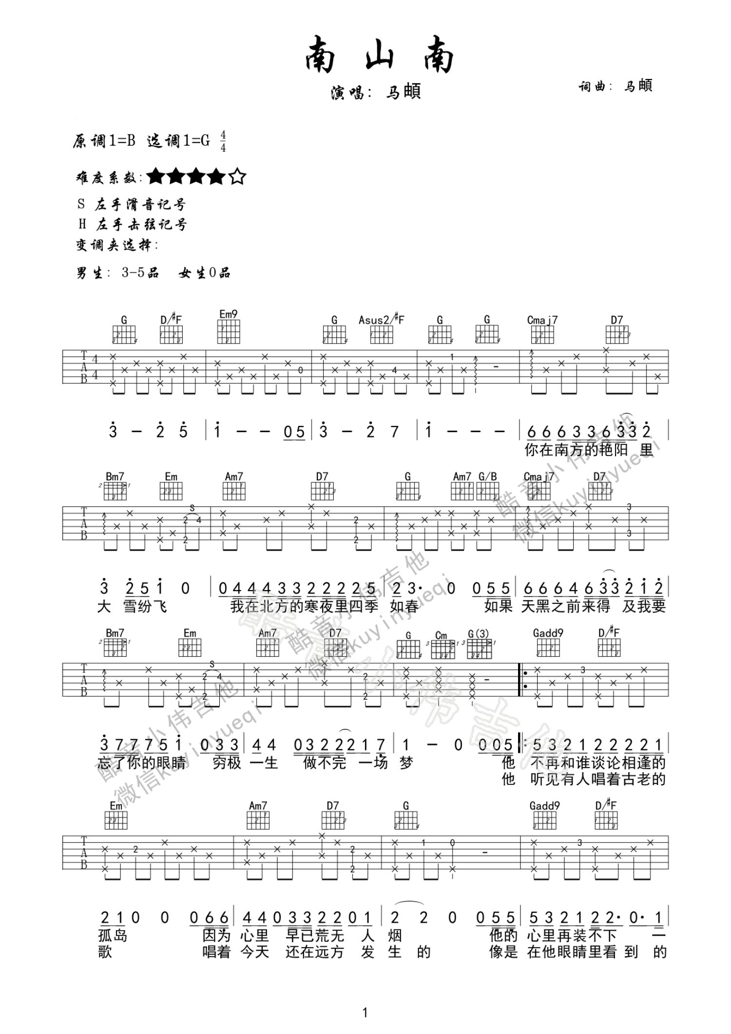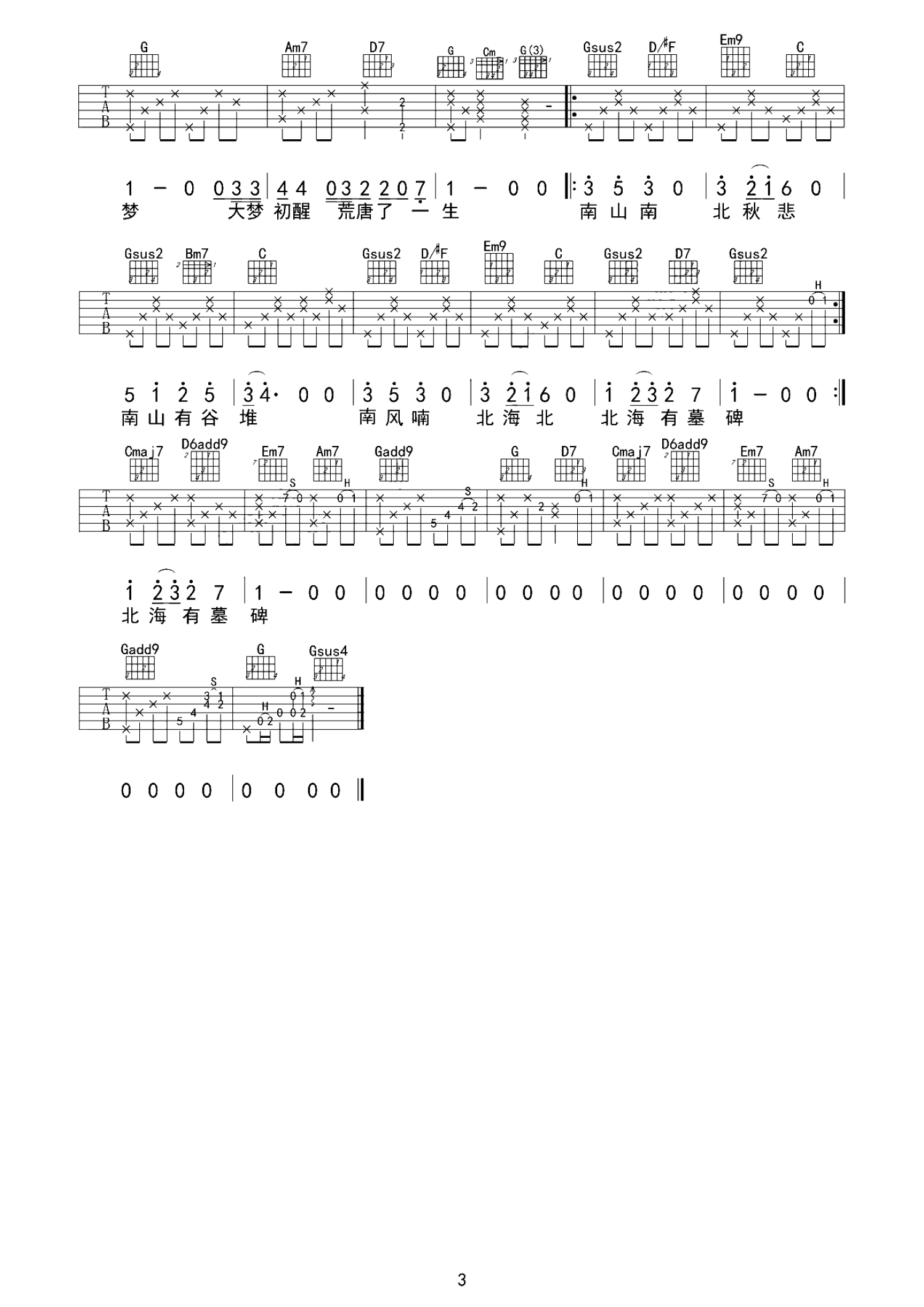 曲谱介绍: 马頔《南山南》吉他谱_C调吉他弹唱谱