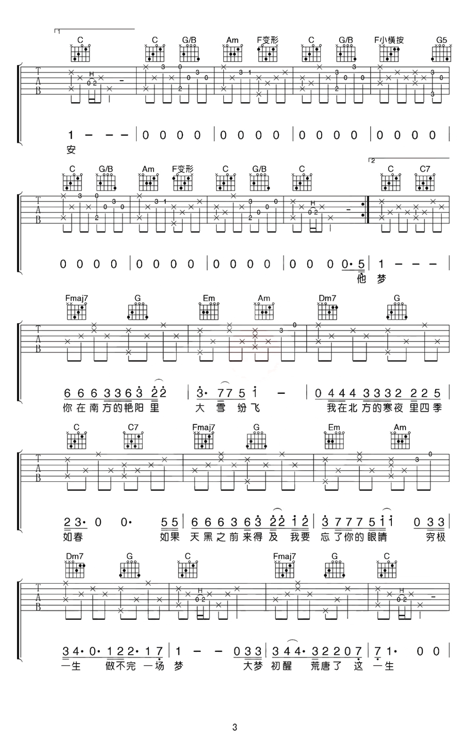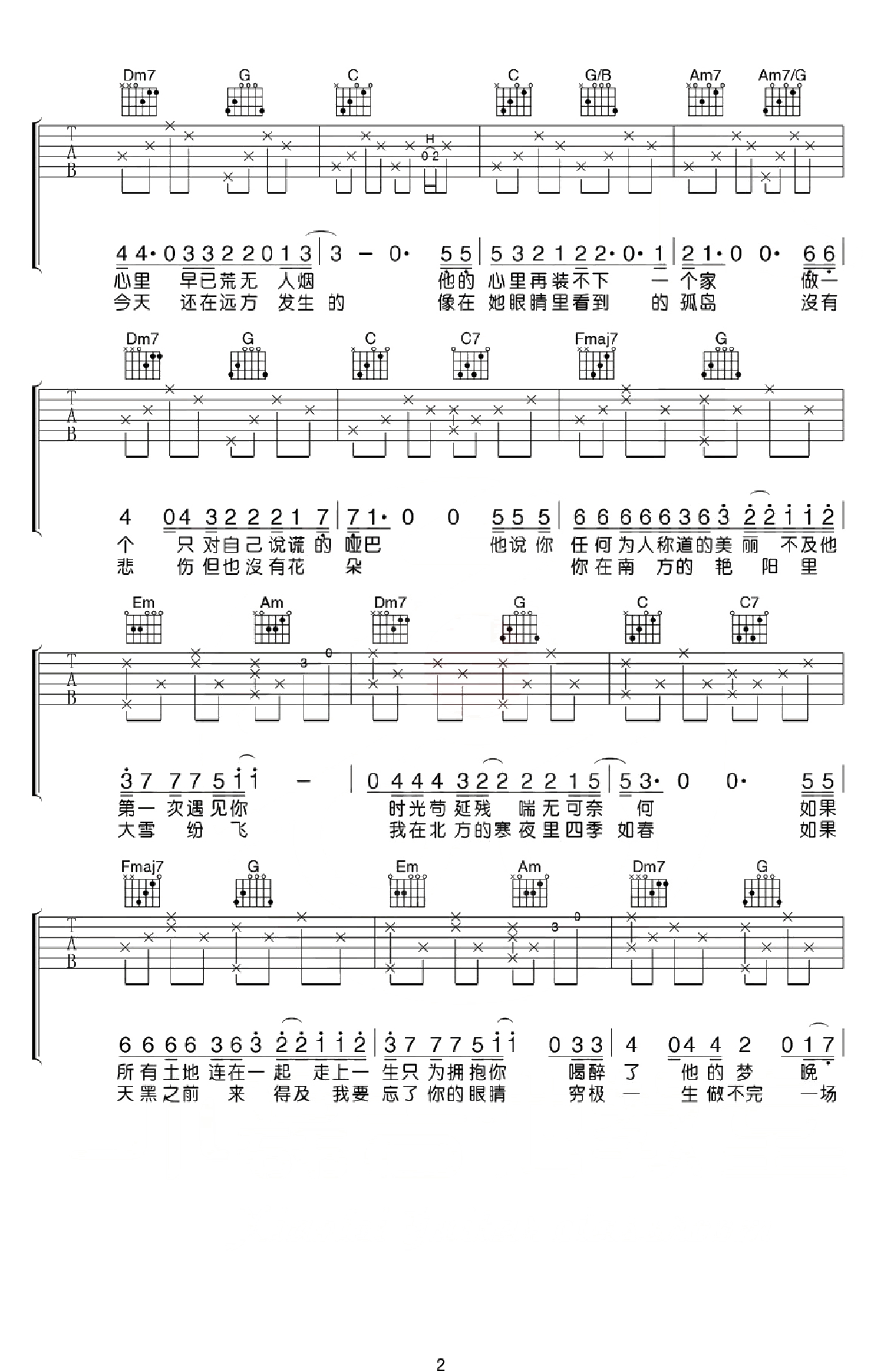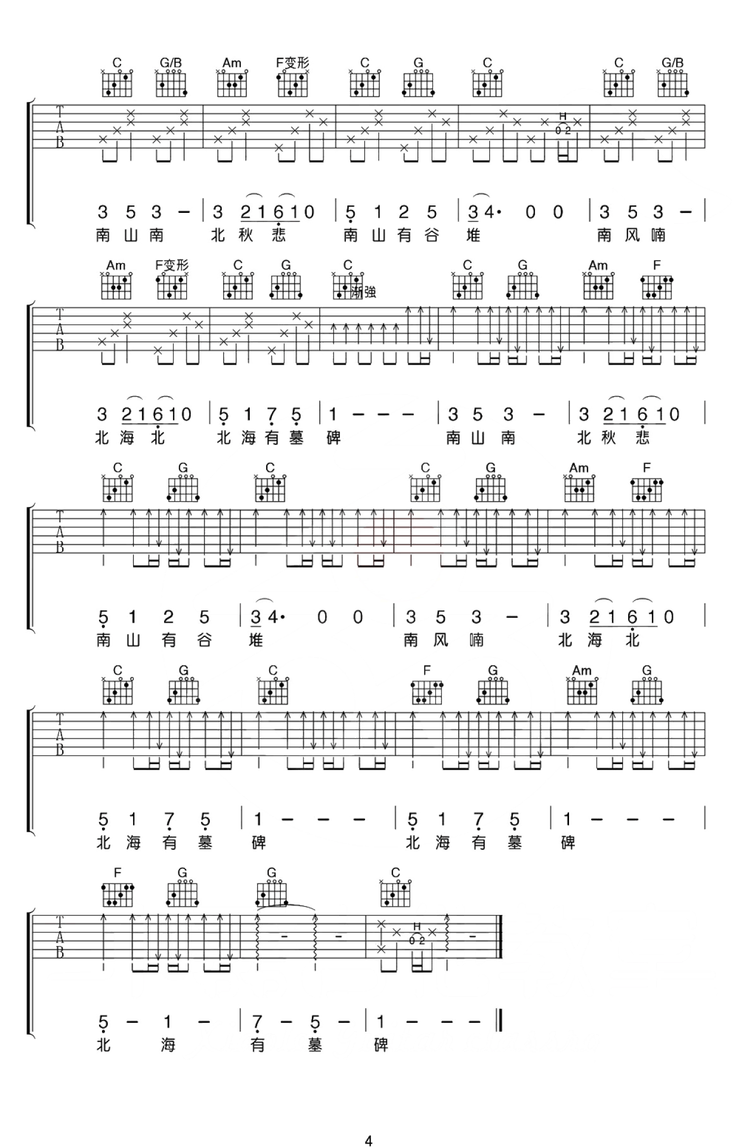 南山南吉他谱 - 马頔 - C调吉他弹唱谱