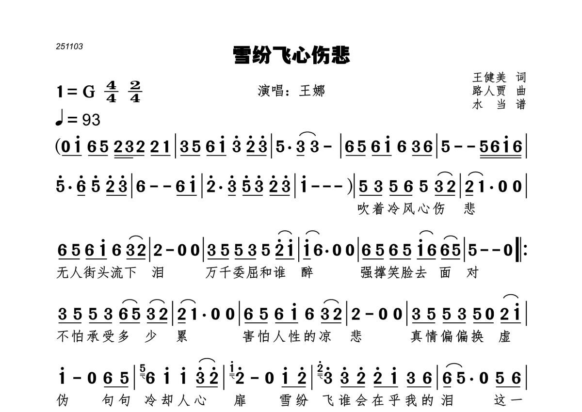 • 雪纷飞心伤悲简谱 - 王娜第1张