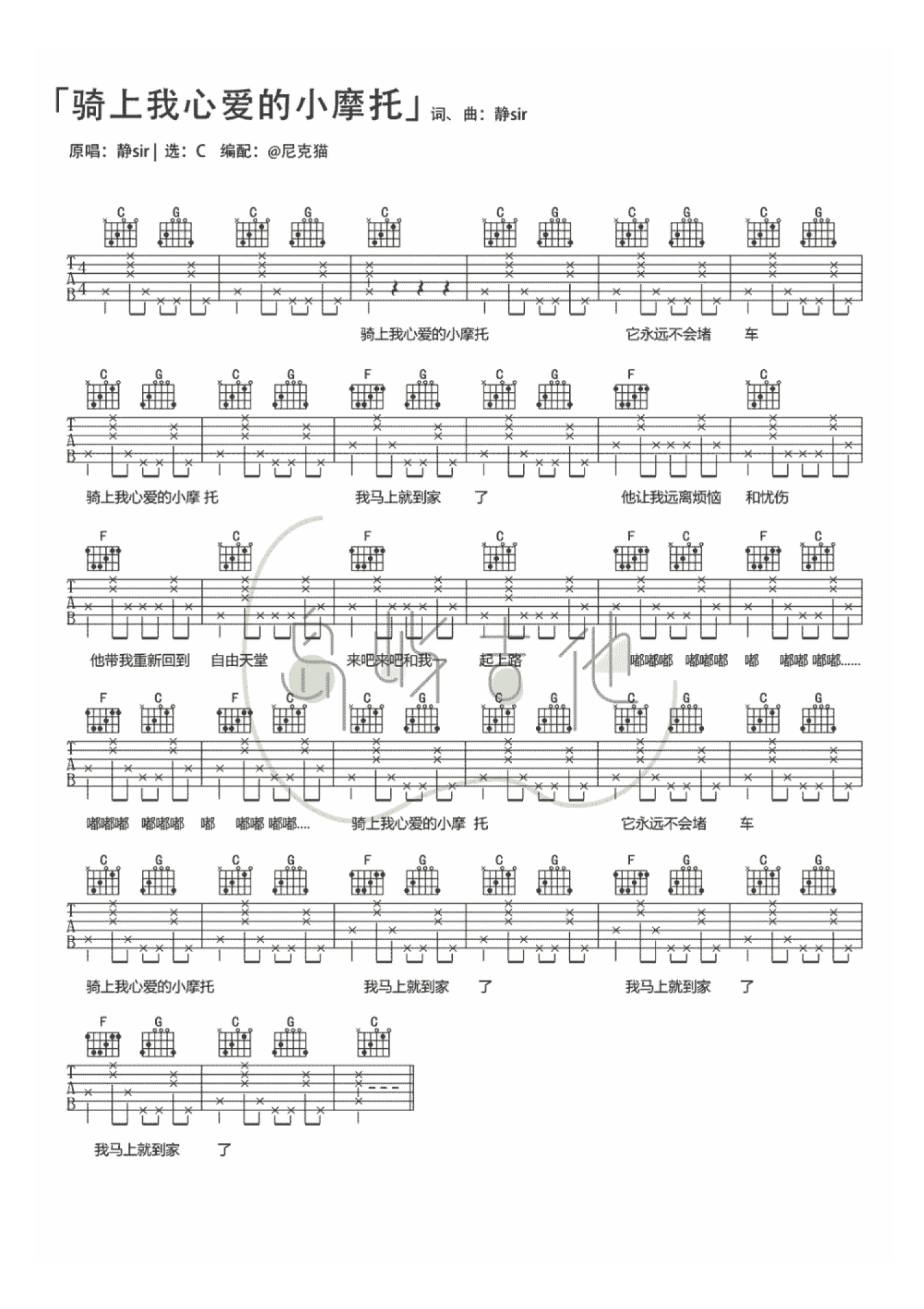 曲谱介绍: 静sir《骑上我心爱的小摩托》吉他谱_C调吉他弹唱谱