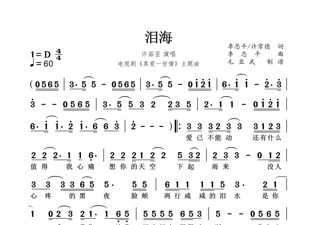 • 泪海 - 许茹芸古筝谱第1张
