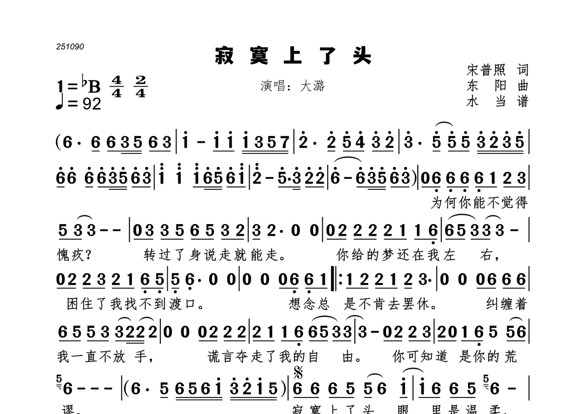 曲谱介绍: 大潞《寂寞上了头》,水当编配出品,共有1张高清图谱,免翻页排版设计。