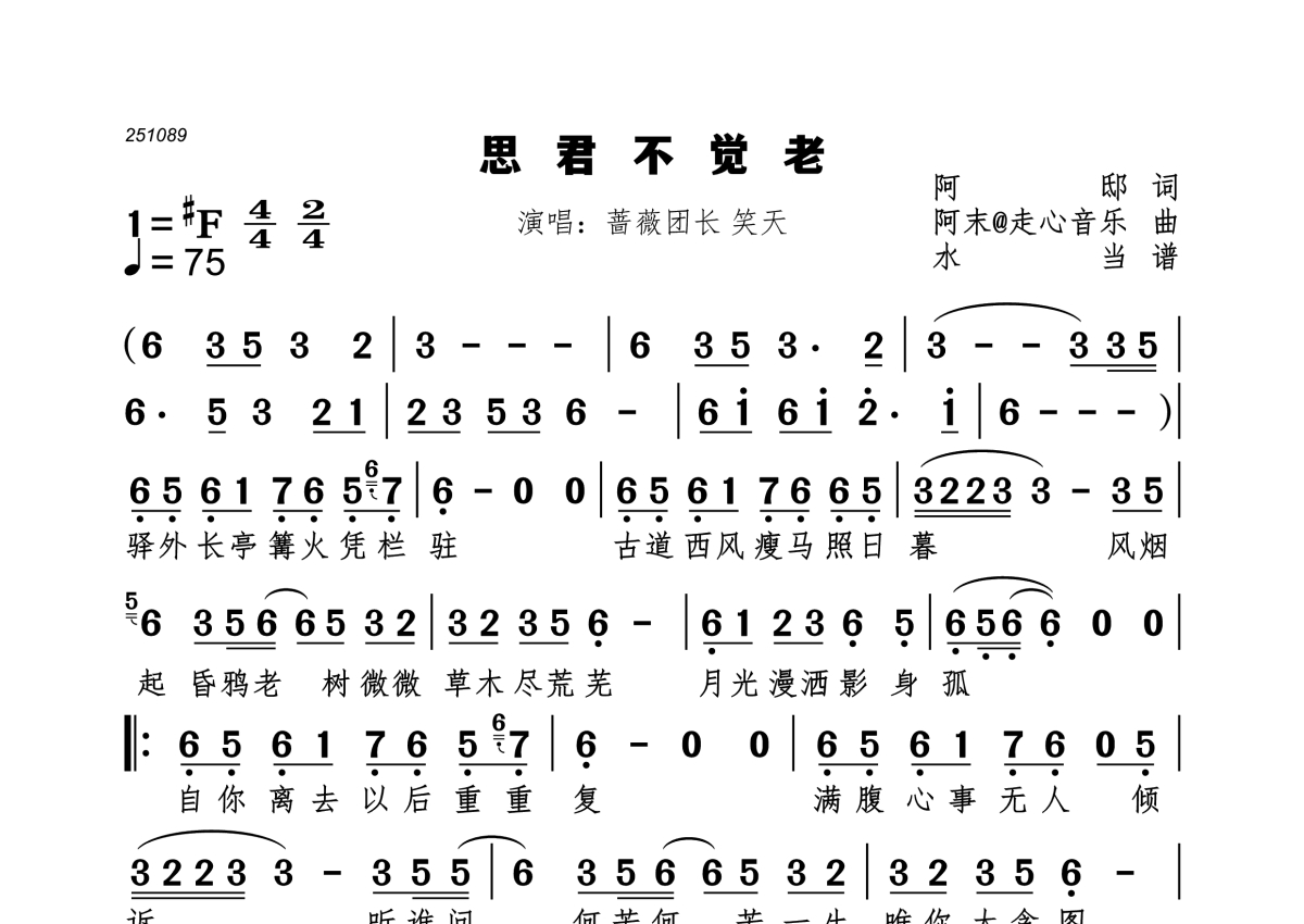 思君不觉老简谱 - 蔷薇团长 笑天