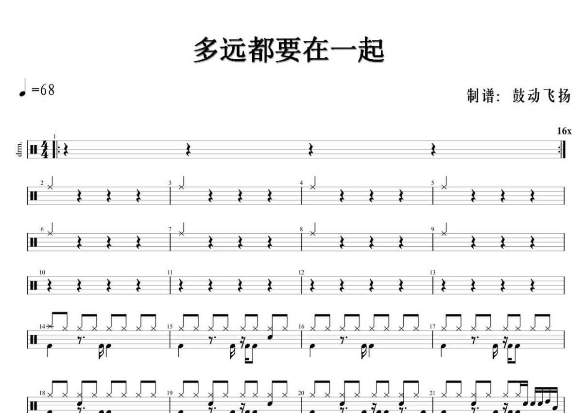 当前位置:琴谱网>架子鼓谱>多远都要在一起