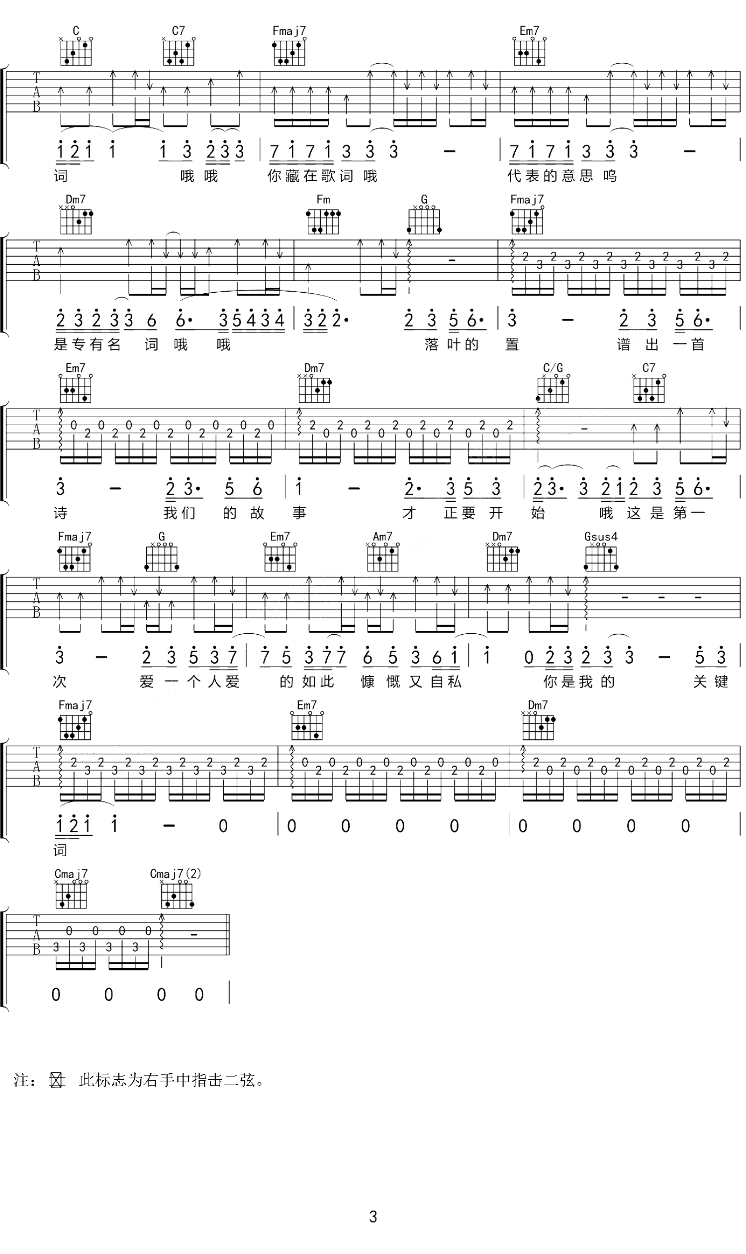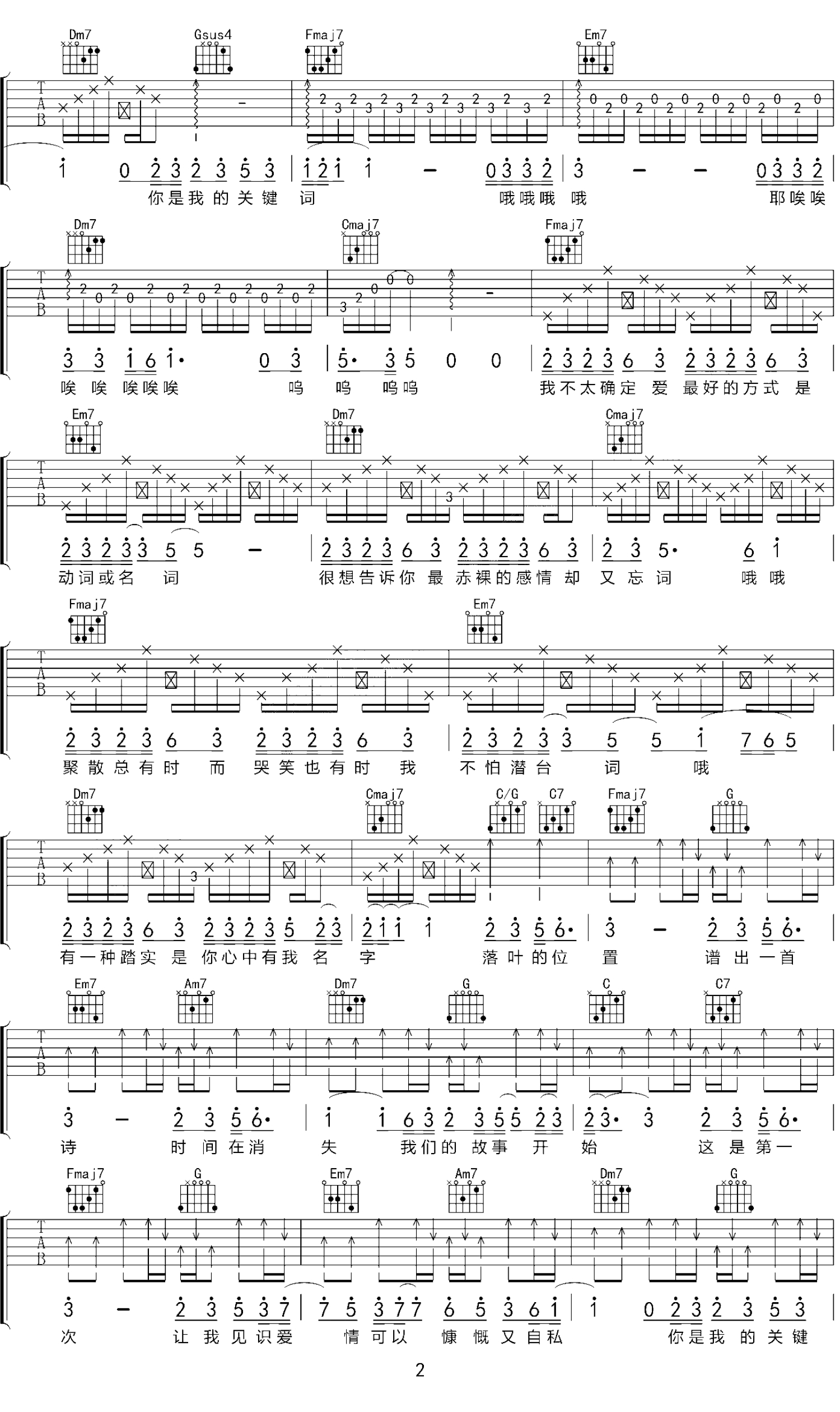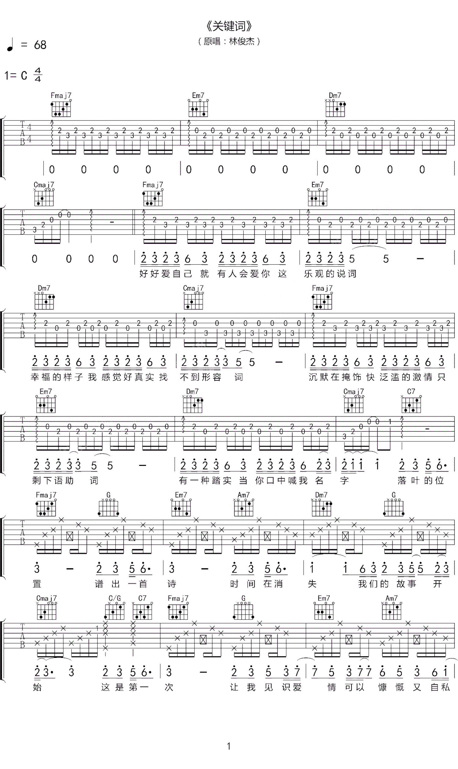 曲谱介绍: 林俊杰《关键词》吉他谱_C调吉他弹唱谱