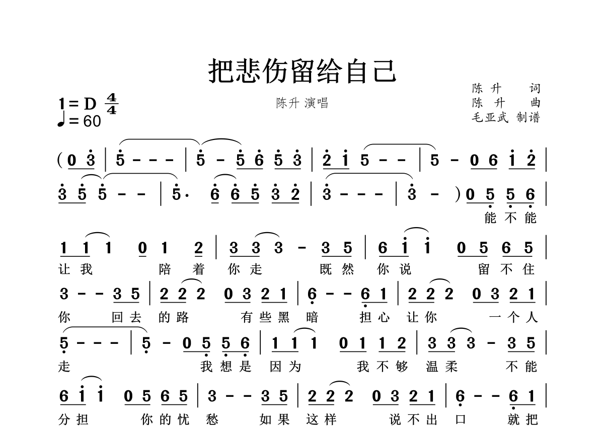 把悲伤留给自己简谱 - 陈升