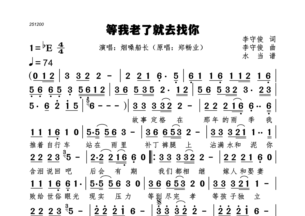 • 等我老了就去找你简谱 - 烟嗓船长第1张