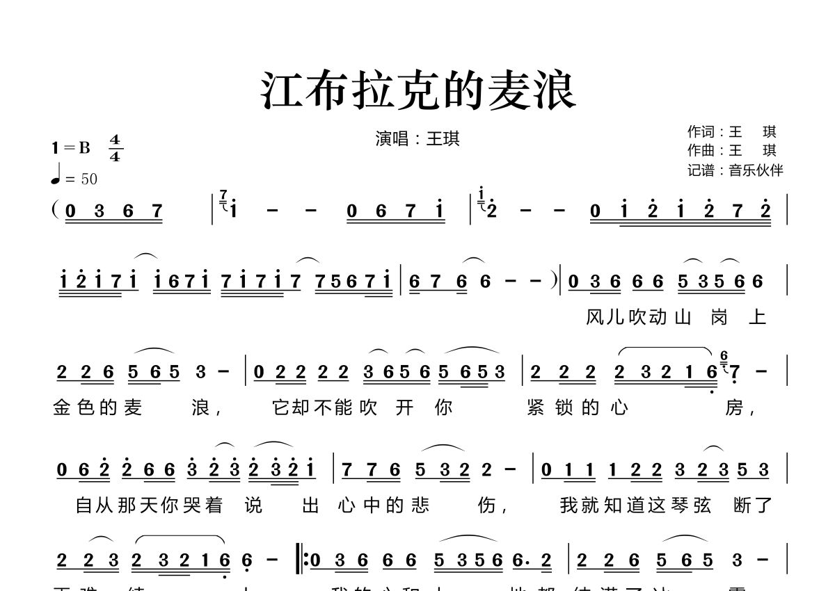 • 江布拉克的麦浪简谱 - 王琪第1张