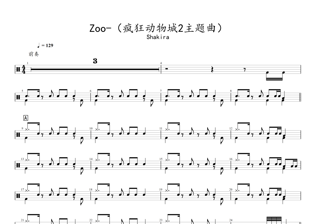 • Zoo-疯狂动物城2鼓谱 - Shakira - 架子鼓谱第1张