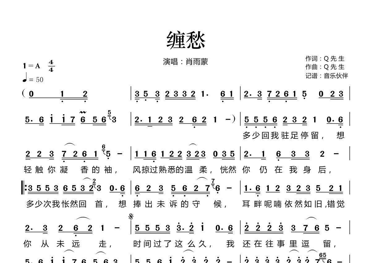 曲谱介绍: 肖雨蒙《缠愁》,音乐伙伴编配出品,共有1张高清图谱,免翻页排版设计。