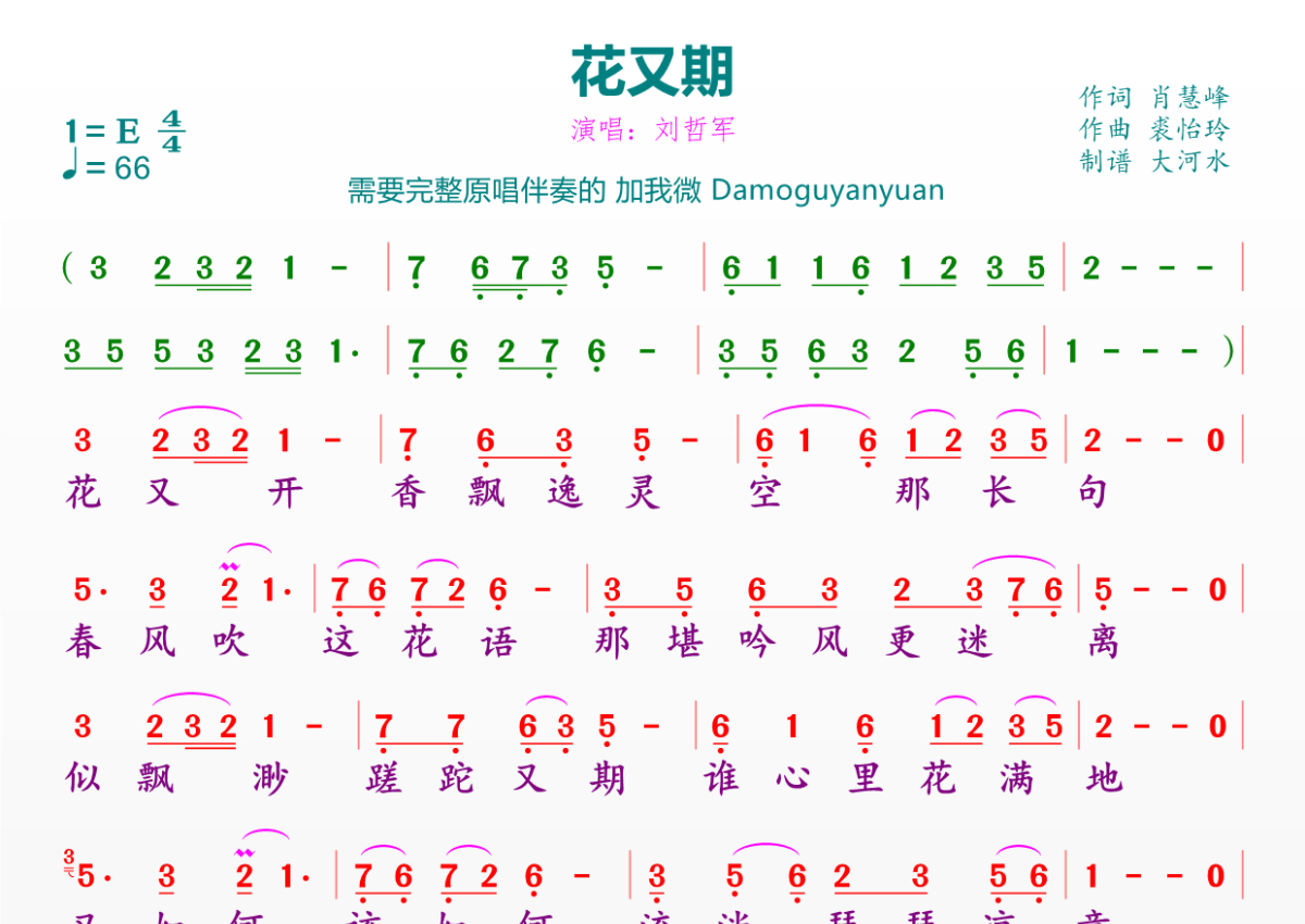 花又期简谱 - 刘哲军