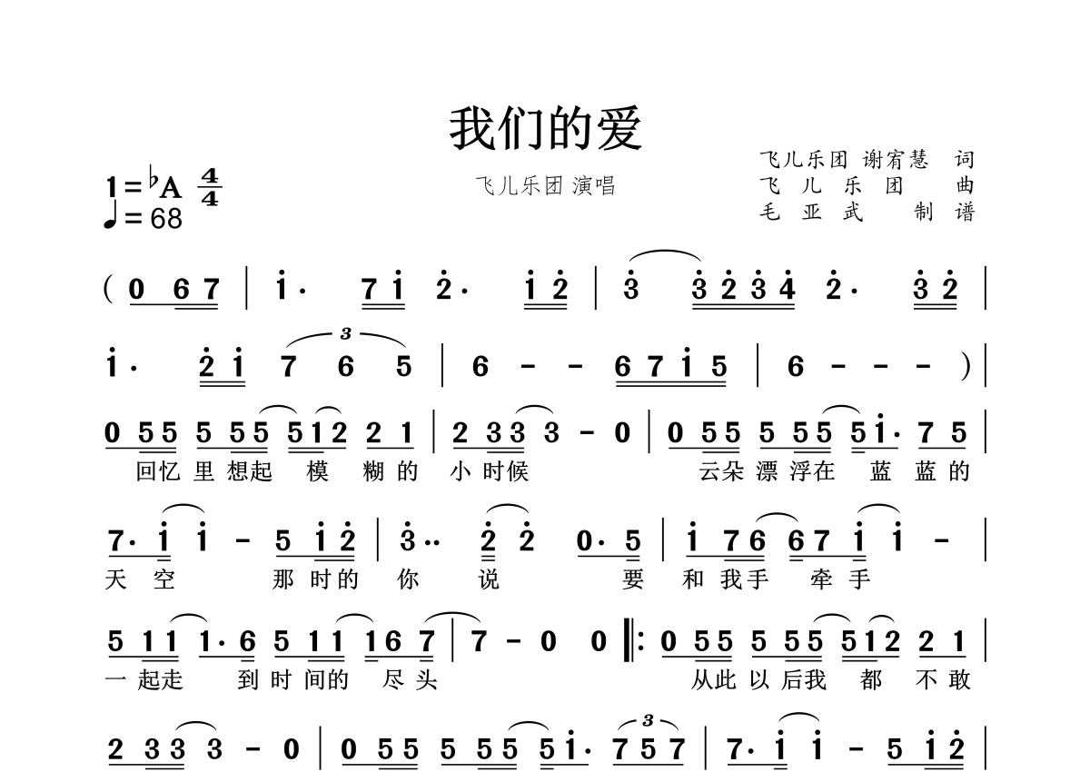 我们的爱简谱 - 飞儿乐团