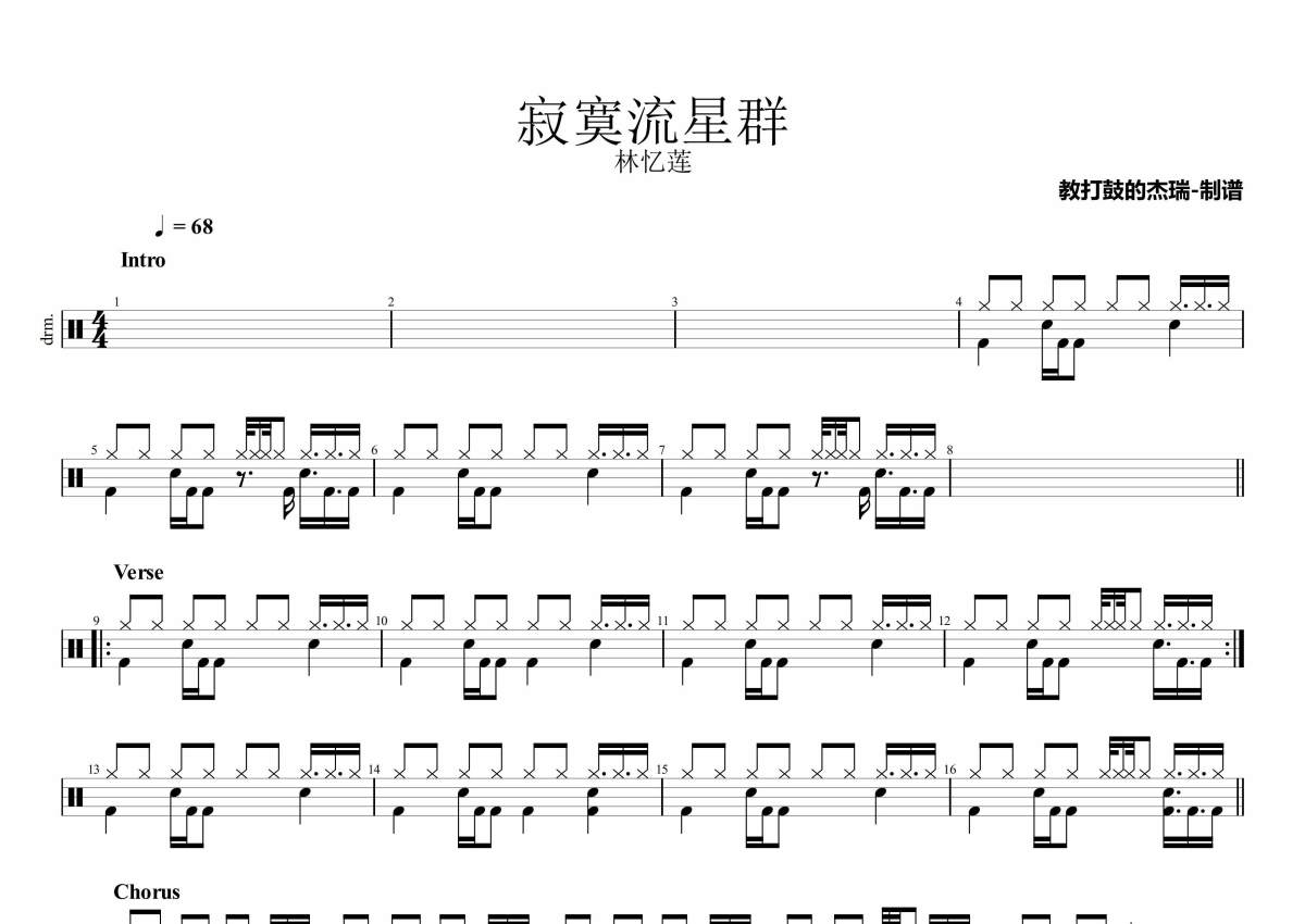 • 寂寞流星群鼓谱 - 林忆莲 - 架子鼓谱第1张