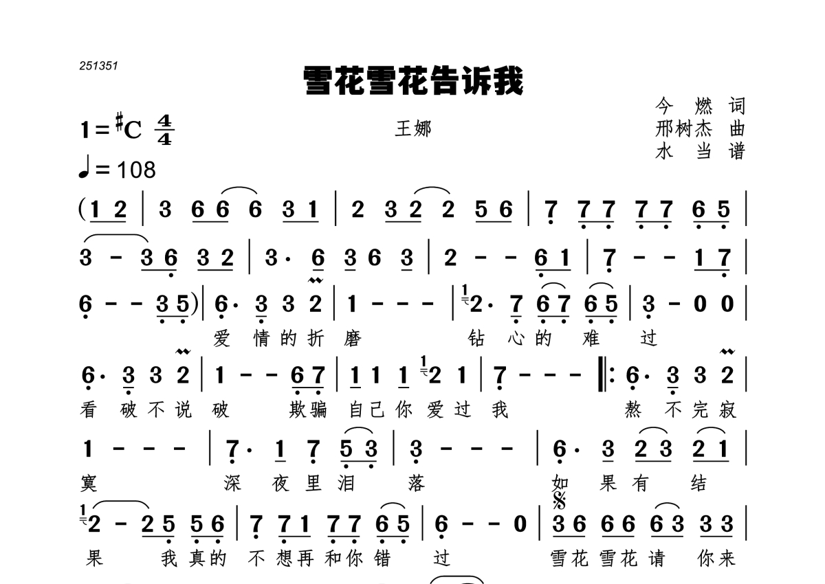• 雪花雪花告诉我简谱 - 王娜第1张