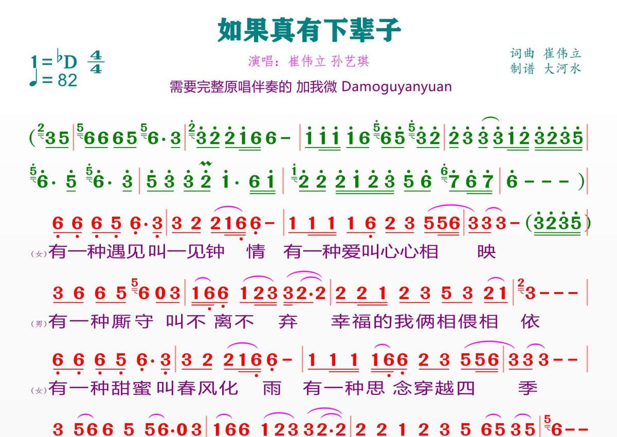 • 如果真有下辈子简谱 - 孙艺琪 崔伟立第1张