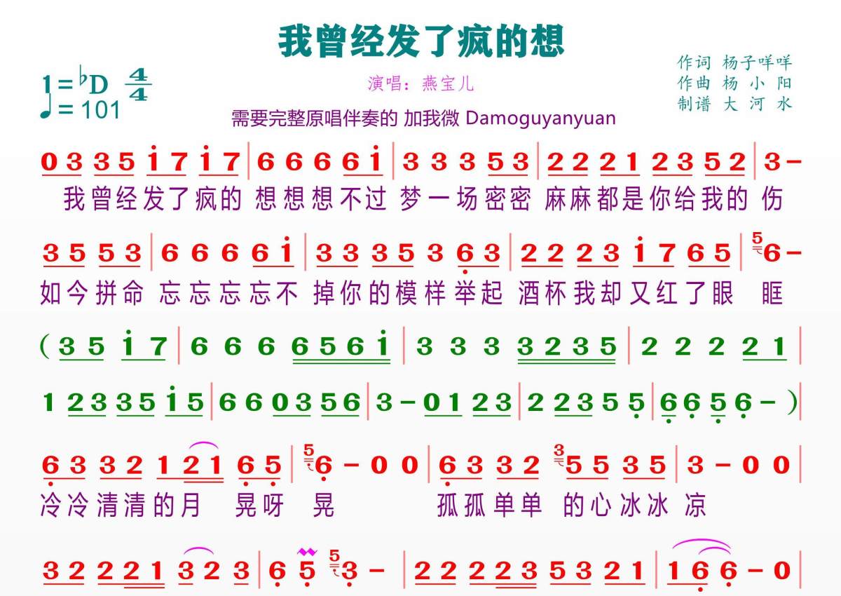 • 我曾发了疯的想简谱 - 燕宝儿第1张