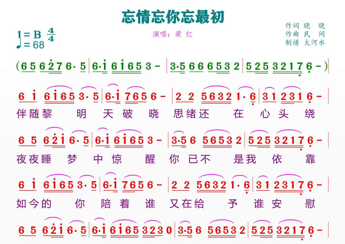 忘情忘你忘最初简谱 - 梁红