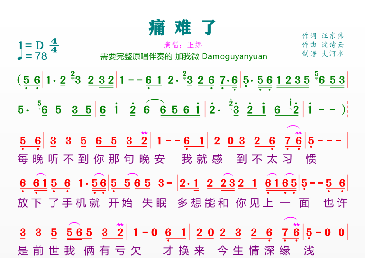 曲谱介绍: 王娜《痛难了》,临海雪原编配出品,共有1张高清图谱,免翻页排版设计。