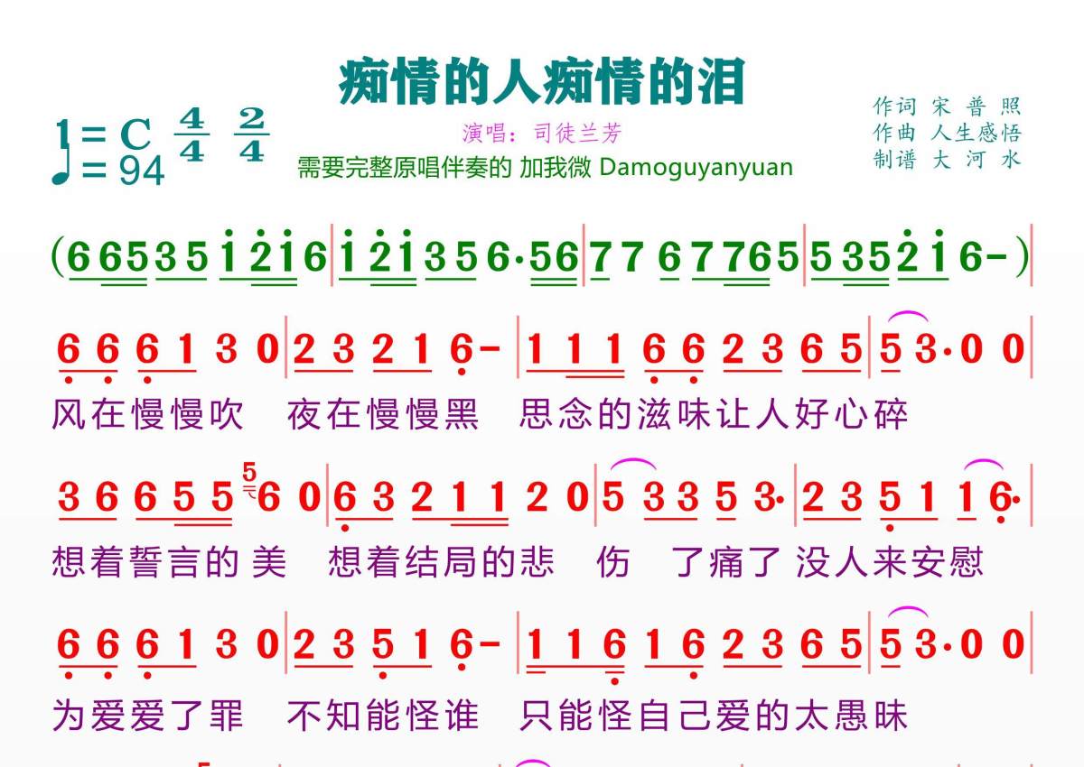 痴情的人痴情的泪简谱 - 司徒兰芳